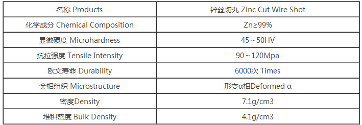 高硬度鋅丸:成分均勻、粒度精純、硬度適中、壽命長。比重接近鋼鐵類,硬度低,所以不但可以在不磨損產(chǎn)品表面的同時(shí)去除較大的毛刺而且在金屬表面形成防腐防銹層。與鋁類磨料不同,粉塵的著火點(diǎn)低,安全性好,并對工件表面具有增白效果。